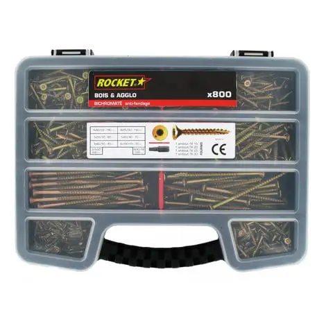 Offre exclusive : coffret complet de 800 vis rocket tête fraisée, étoile en acier bichromaté + 4 embouts