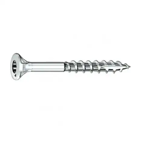 RĂ©sistance Ă la rupture Filet inclinĂ© Ă 40°, forte rĂ©sistance Ă l’arrachage 6 stries en fond de filetMeilleur couple de vissage Pointe effilĂ©e de 22 Ă 25°, pour vissage prĂ©cis Entaille coupante, suppression du fendage du bois