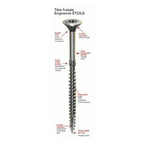 – une pointe effilĂ©e 22 Ă 25° pour un vissage prĂ©cis