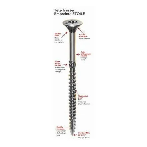 – filet incliné à 40° assurant une forte résistance à l’arrachement