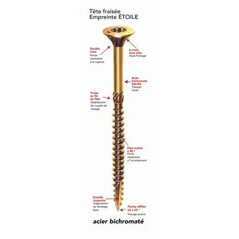 – acier bichromaté lubrifié pour un vissage facile