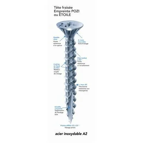 La vis inox Rocket est simple, rapide, efficace, elle est munie d’une entaille coupante qui supprime le fendage du bois, de stries en fond de filet, d’une empreinte plus profonde.